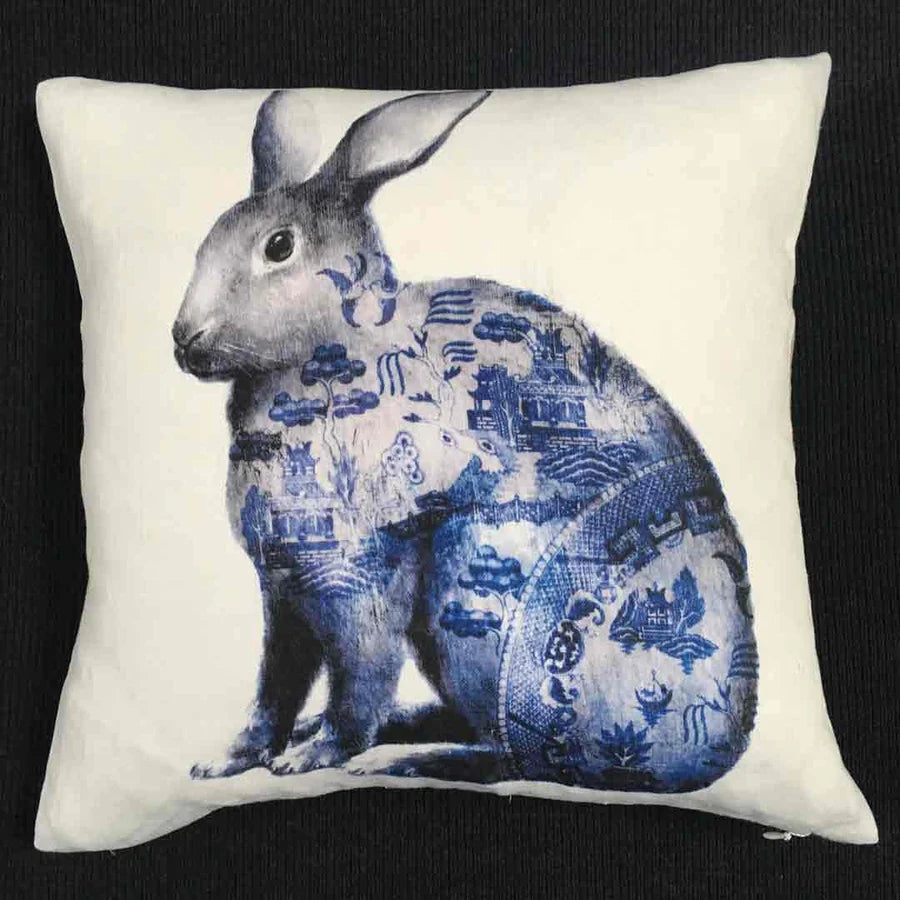 Blue Willow Rabbit - Linen Cushion
