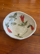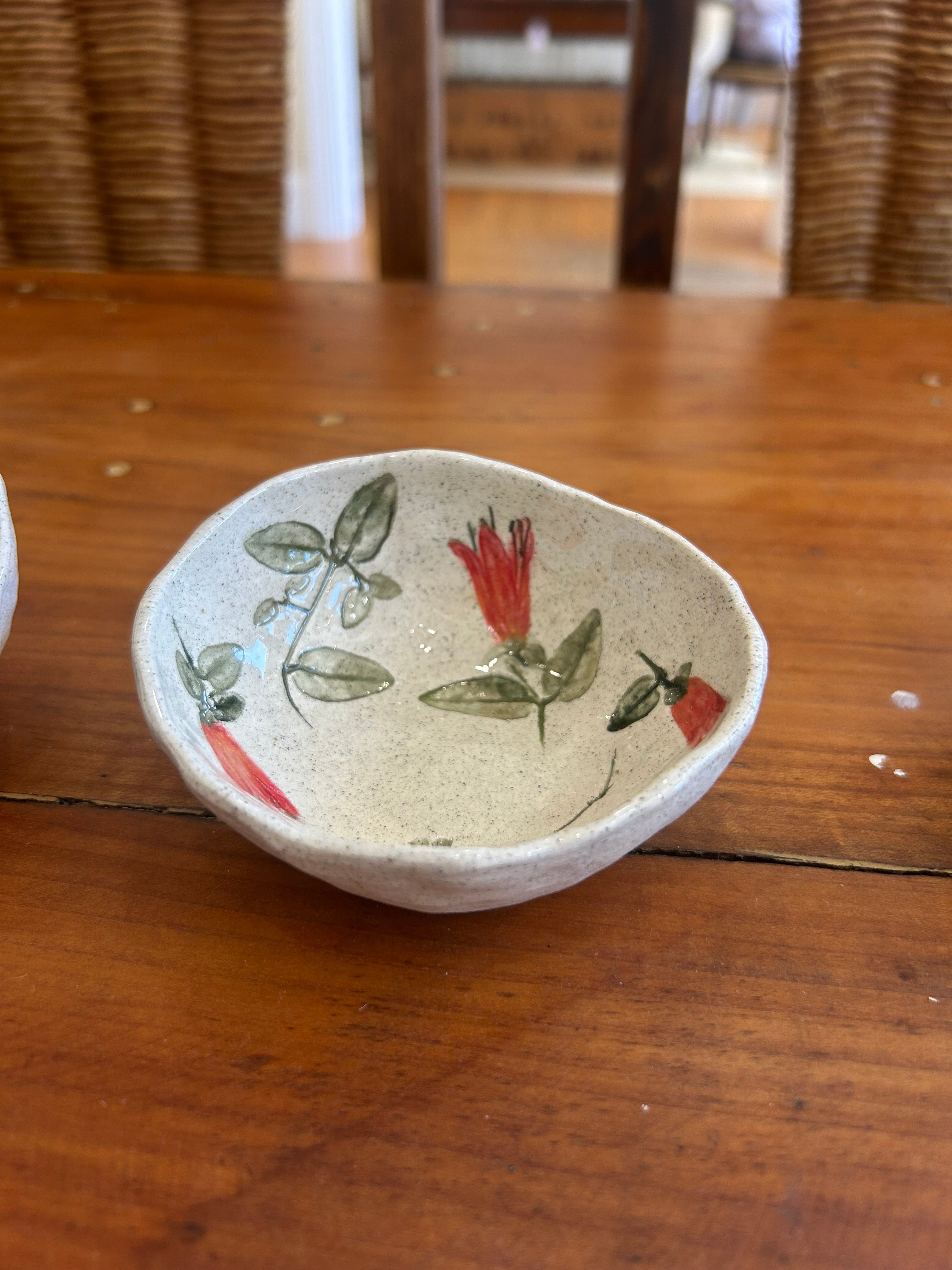 Each piece is unique & made with love. All flowers, leaves & vegetables are rolled into the clay then hand painted.